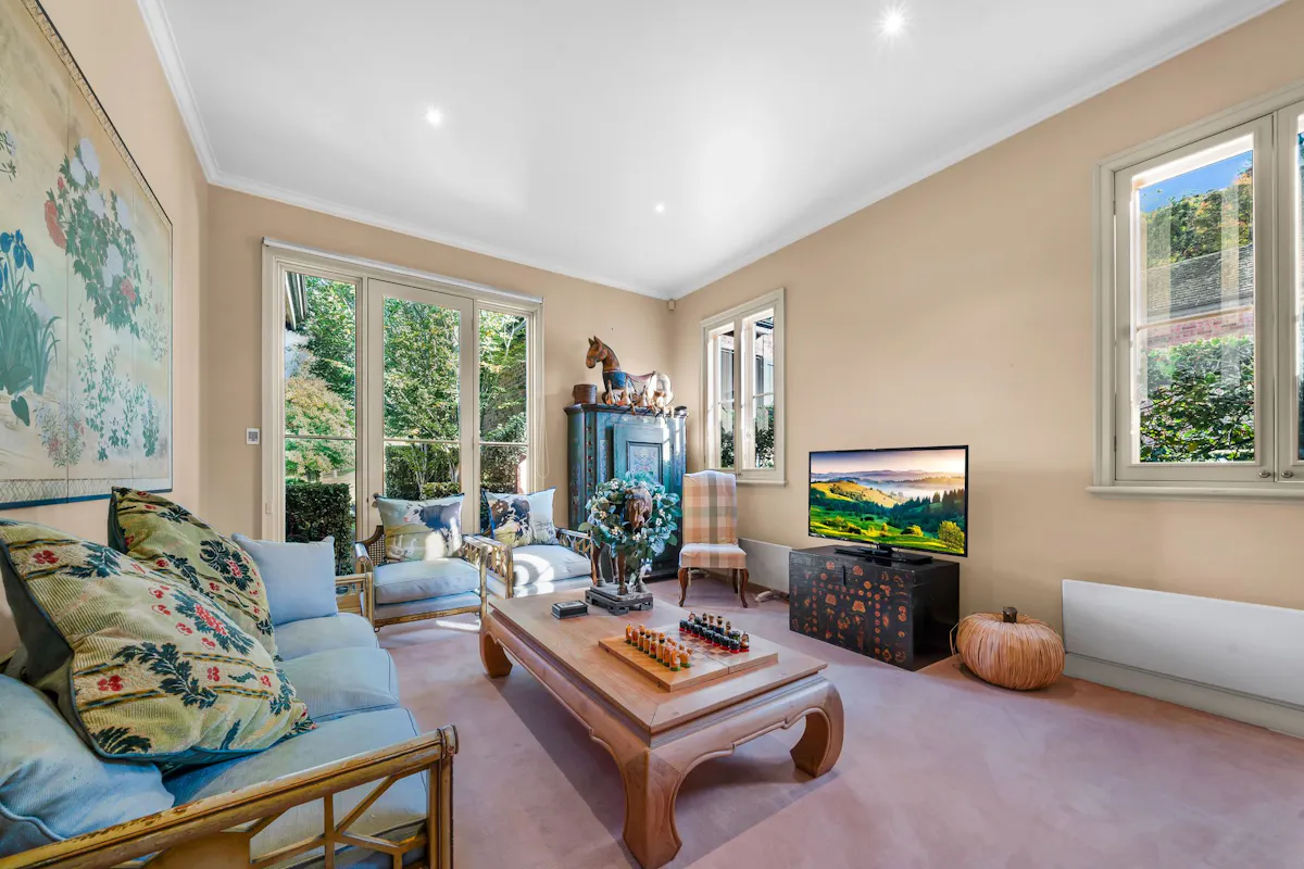 Rich in character and individuality, the home offers expansive living and entertaining areas, with large windows framing the outlook and drawing natural light throughout. The floorplan balances grand proportions with warmth and functionality, comprising four bedrooms and four bathrooms, and creating a residence equally suited to family living and large-scale entertaining.